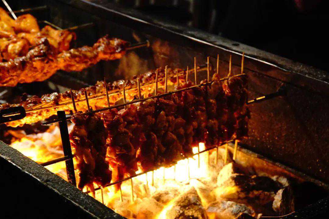 ▲在热碳的炙烤下,肉串滋滋冒油,渗出滴在碳上,冒出缕缕浓烟。图/视觉中国