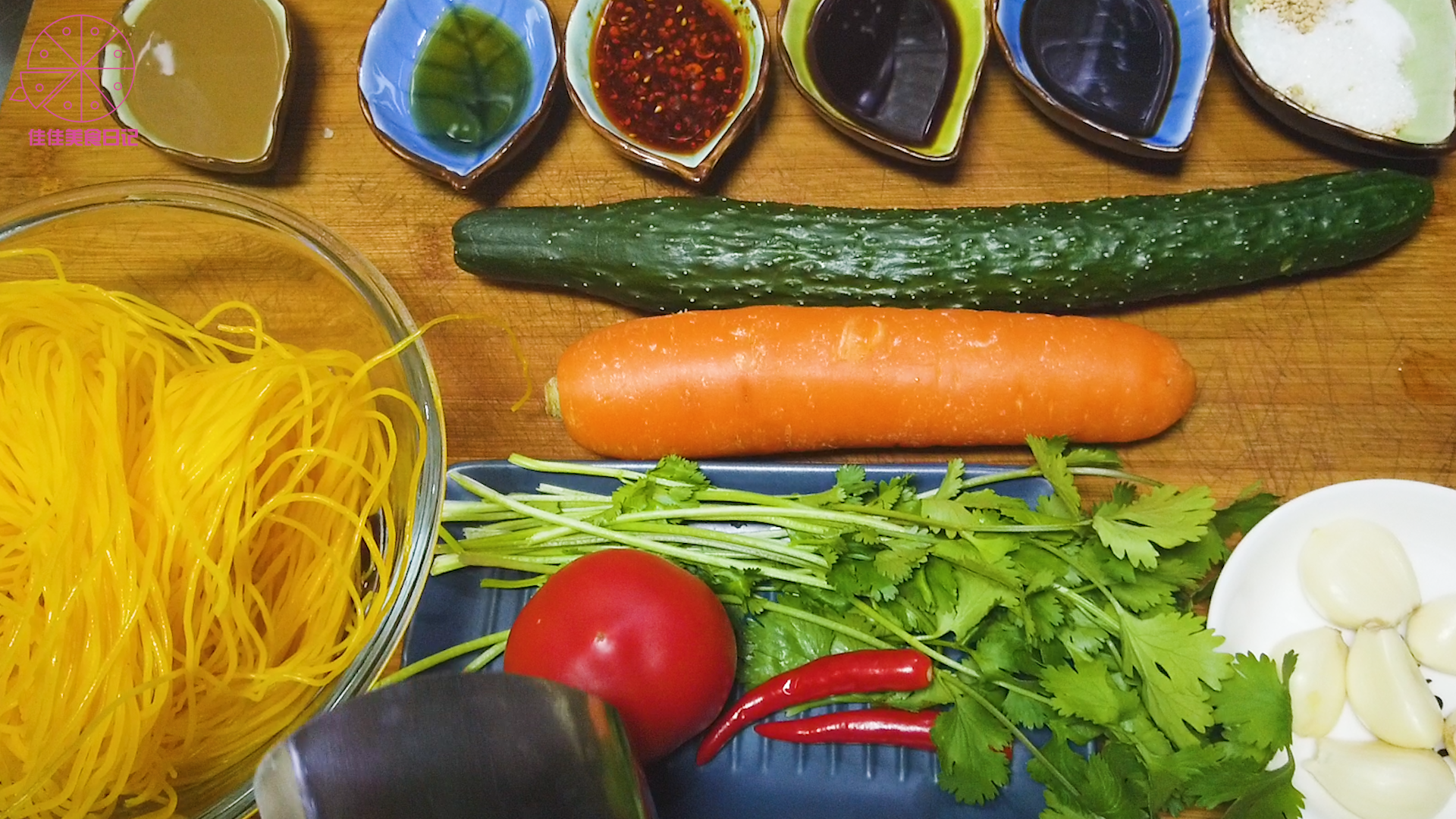 黄瓜、胡萝卜丝、小米辣、蒜、香菜
