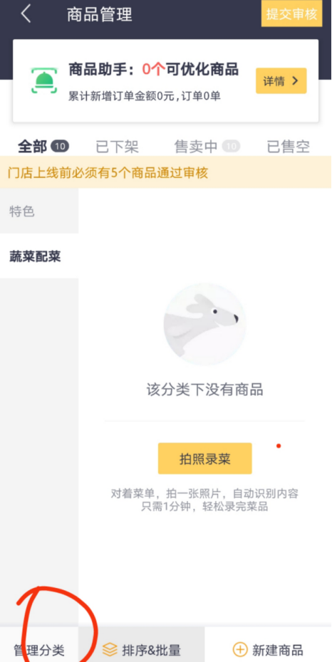 创建好分类后形成如下界面,可以准备录入菜单了
