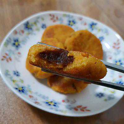 简介By营and营用料红薯1个白糖适量糯米粉适量红豆馅适量做法步骤1、地瓜糯米糖一起揉捏2、糯米粉慢慢加。能捏成团就行。3、豆沙馅和糯米团这两个现在看着都好恶心呢。哈哈哈4、用手捏成团手指慢慢压成圆片,把红豆馅包住。很容易裂开。慢慢包。小心点。5、平底锅放油慢慢煎。6、出锅了。再脆里糯。红豆香甜。7、孩...