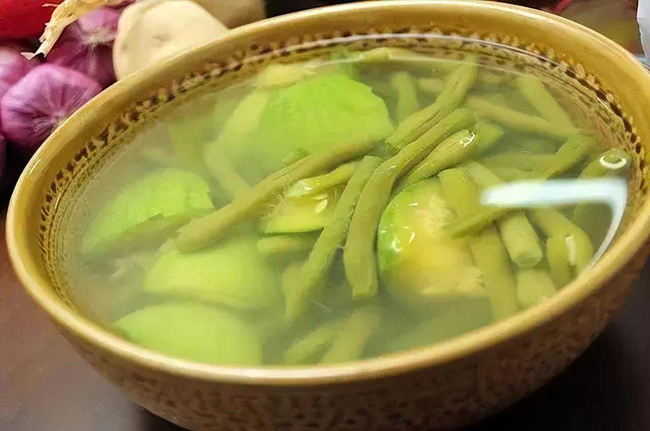 素瓜豆,是黔菜中的一道特色凉拌菜,以南瓜丝、四季豆、黄豆芽等蔬菜配以辣椒、姜、蒜等调料制成。视觉上绿红交错,清新怡人;味道上酸甜适中,与很多重油重口的菜肴遥相呼应。适量吃些素瓜豆,可以中和其他菜的油腻,又可起到解油清香的作用,真是不能再适合与贵州菜搭配了。来贵州走亲戚的朋友,看到东西桌上摆着一盘色泽鲜亮的素瓜豆,不妨也夹几筷子,定能品出它的美味。