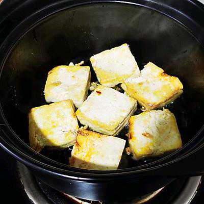 8、放生抽,少许盐和汤,加一碗水和剩下一半的豆腐。