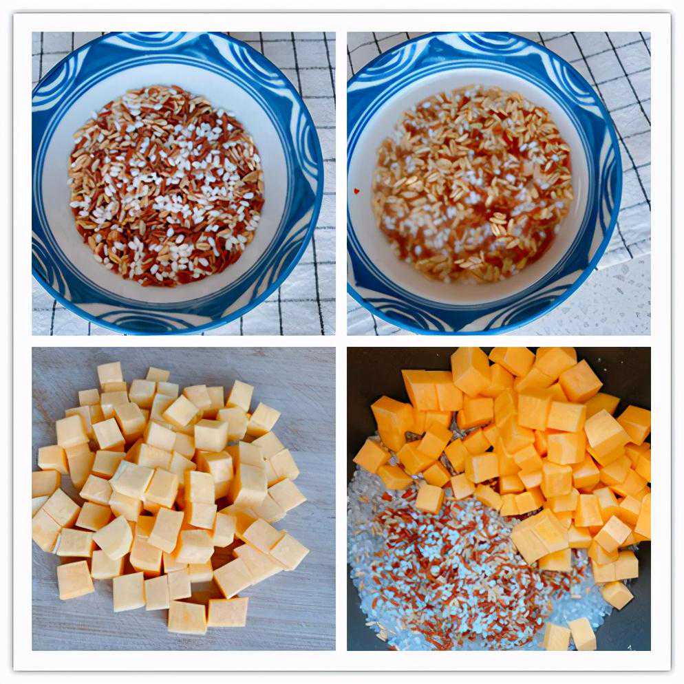 【原材料】大米30g、糯米30g、燕麦米30g、红米30g、南瓜200g;