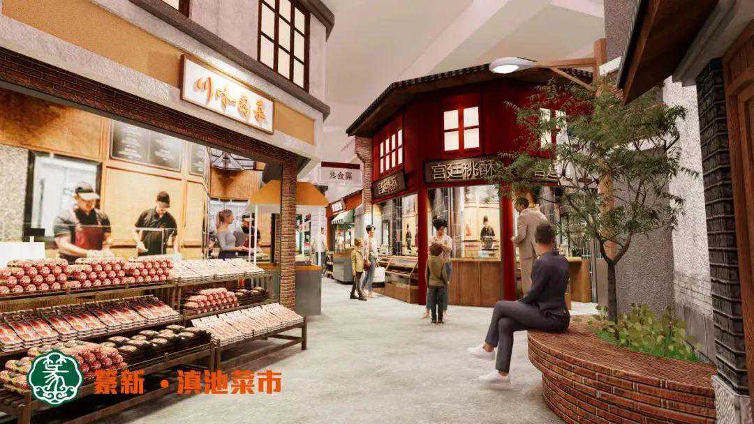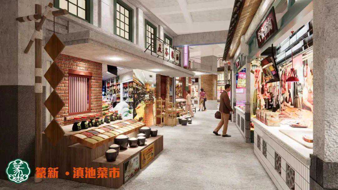 同时,针对南市区的消费群体,篆新·滇池菜市建立了一个较大的海鲜市场。大约有1000平方米的海鲜市场,它可以满足终端人群。新开辟的6000平米广场空间,定位为未来城市农场,这里将打造多变的各类主题活动,比如农场市集、面包市集、咖啡市集、坚果市集、旧物市集等等,把农产品和生活联系起来,逐步打造无土栽培的植物,制作轻食;以小麦制作蛋糕的烘焙店,其原材料主要使用在地食材,例如小麦、啤酒等。结合生产过程和整个制作过程,形成了城市牧场的主题。将这些产物从制作过程到生产过程都呈现出来。吸引更多的人来到这里。