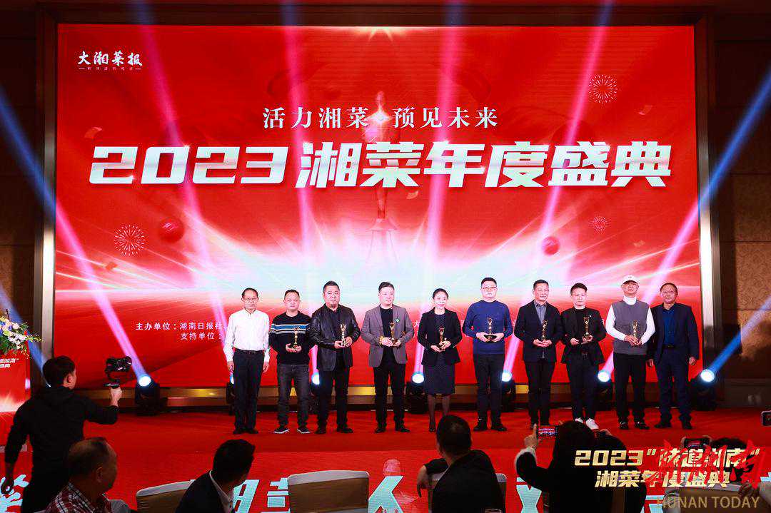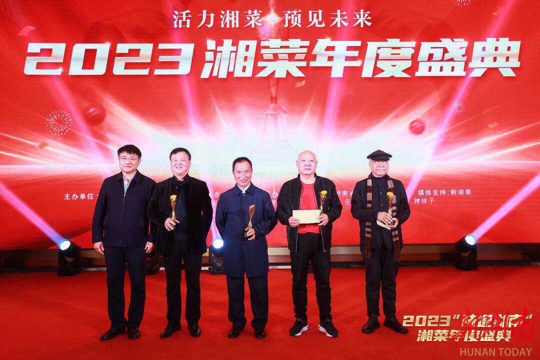 在颁奖环节中,四位年逾古稀、为湘菜产业传承和发展奉献了毕生精力的业界宿老获得终身成就奖,他们是“双艺大师”张志君、“辣椒大王”杨意红、“湘菜入京功臣”姚经建、“大陆祖庵菜第三代唯一传承人”孔起铁。湘菜新消费领域聚味瞿记品牌创始人瞿涛、湘菜预制菜产业杰出品牌“许大师”创始人陈冲等17人获评2023湘菜年度人物。