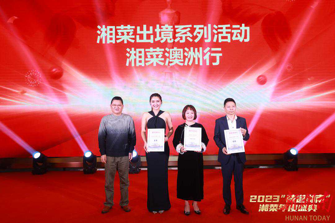 今年的湘菜年度盛典首设“湘菜海外推动奖”,澳大利亚“八百里”新派湘菜创始人胡翔、澳大利亚中国总商会秘书长姜南、墨尔本同乡会会长sunnyyang三人获此殊荣。此外,还有一批湘菜头部连锁品牌及省内食品产业领军企业代表获得嘉奖。