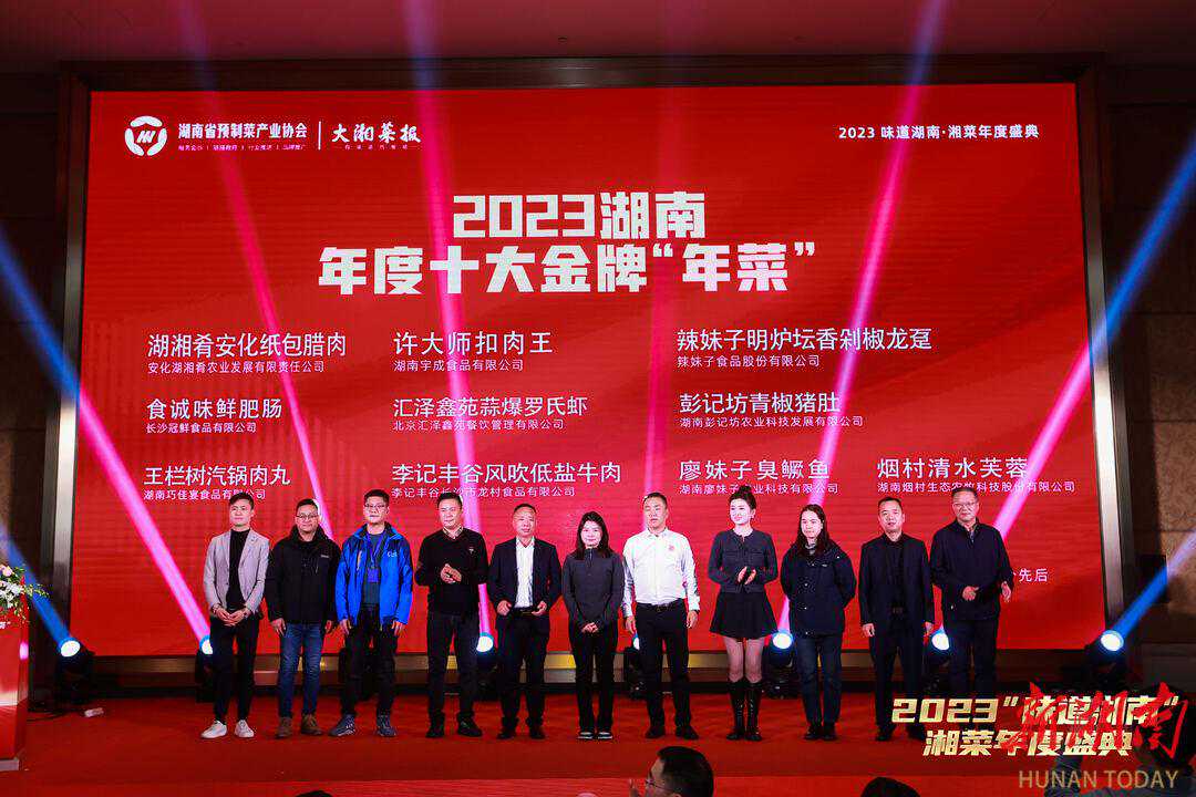 颁奖仪式结束,“潇湘盛宴”随之热辣开场。由著名湘菜大师谭兆元、徐向阳领衔的团队精心烹制了“金牌年菜”品鉴晚宴。谭口福精肉鱼肚海参、吴记禾叫堂鸡、冰火楼酸辣滩羊、许大师千层扣肉、湖湘肴安化纸包腊肉等菜品依次登场,让嘉宾们大饱口福。