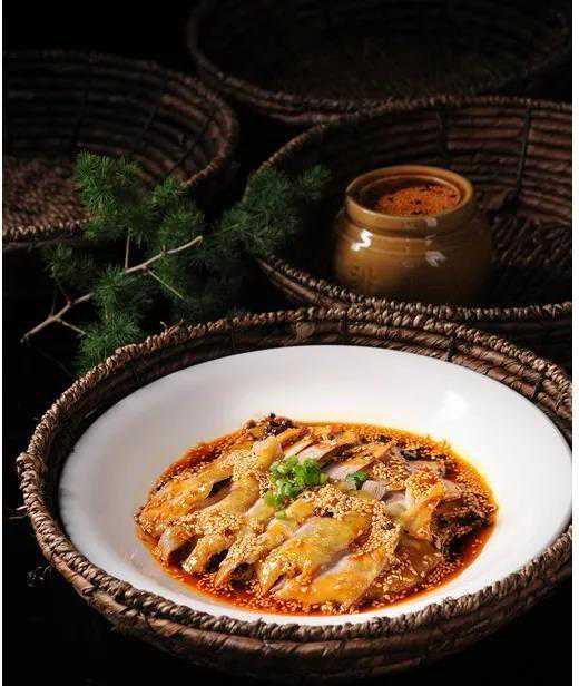 荣州麻辣鸡以独特的蒸鸡留汁,以掌击刀,最大程度保持了鸡肉的鲜美。同时,在拌佐料的时候会加上专门熬制的鸡汤。麻辣鸡的切片也不会像平时吃的麻辣鸡那样切成块状,而是削成片状。一个完整的土鸡大概可以做好2盘美味的麻辣鸡,色泽红亮鲜艳,质地嫩气,味厚香浓,麻辣爽口。