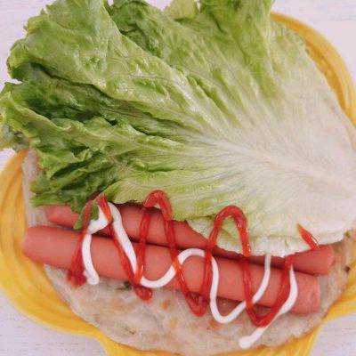 这个是无敌EASY的懒人美味手抓饼鸡蛋香肠生菜手抓饼番茄酱沙拉酱