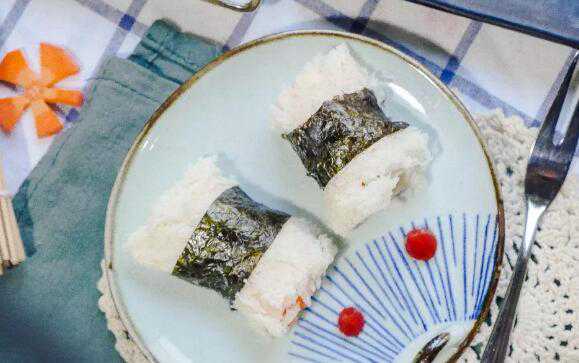 有时候赶上起床晚了没时间给小思同学做早餐,就赶快把家里常备的自制吐司面包拿出来,然后准备点富含蛋白质的虾肉,以及补充维生素、矿物质的胡萝卜丝,加上香脆的海苔,就包裹成了一个小“饭团”。