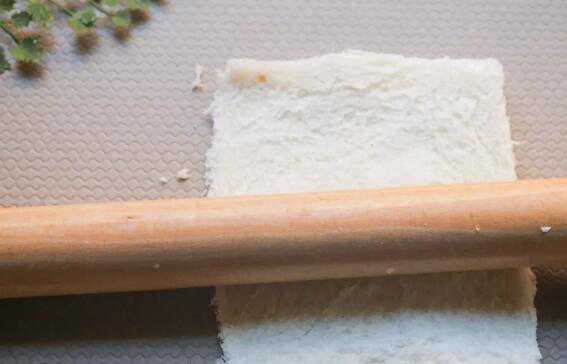 PS:吐司最如果太干的话,卷成卷的时候不能很好的成型。吐司太干的话,宝妈可以用喷壶喷上点凉白开或是纯净水增加湿度也是可以的哦~