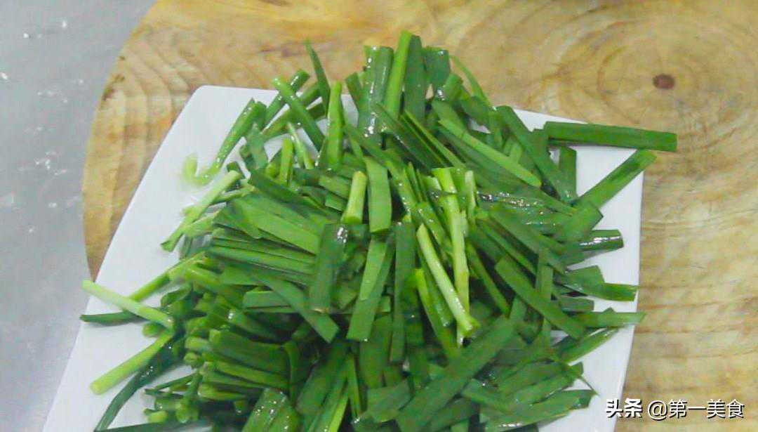 1.准备韭菜一把,清洗干净后,用刀切成3厘米左右的小段子。