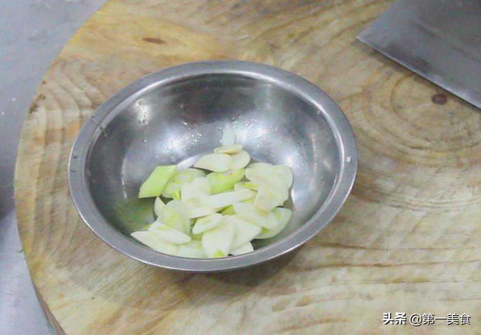 4.准备大葱白一段,葱白切成圈。大蒜几粒,切成片。
