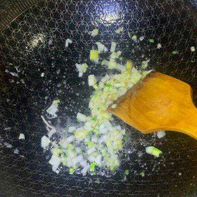 3、锅内留出少许油,将姜末和葱末倒入爆香
