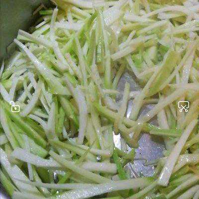3、小瓜冲洗切丝、蒜剥皮切碎。
