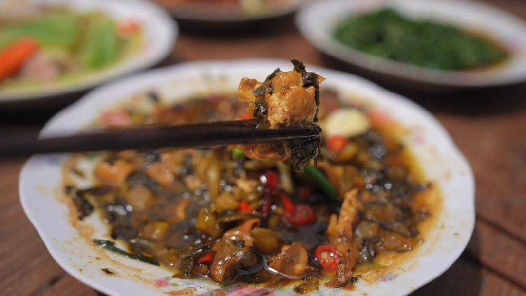 村民段美春告诉记者,他们家的土灶台已经有20年的历史,是当年她出嫁的时候砌的,就连吃饭的碗筷也是同时期购买的。每个春季,最馋的还是这道咸菜炒蚌肉。“咸菜烧蚌肉又鲜、又嫩、又好吃,莴笋、竹笋这两道菜稍微带点热气,菊花头是清热解毒的,可以中和一下。土灶头烧起来虽然麻烦,但是它有一种特殊的味道,像我们小时候一样的味道。”段美春评价说。