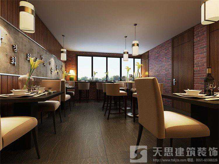 韩国紫菜包饭属于一家连锁店,在合肥目前有接近10家分店,在装修风格上结合了地域文化特点,韩国人的居住空间比较狭小,对空间的利用非常紧凑。席地而坐的生活习惯让他们呈现出一种低姿态的,贴近自然的生活形态,居室的设计所呈现出来的是小家碧玉式的精致,没有奢华和张扬。空间装饰多采用简洁、硬朗的直线条,反映出现代人追求简单生活的居住要求,迎合了韩式家居追求内敛、质朴的设计风格。