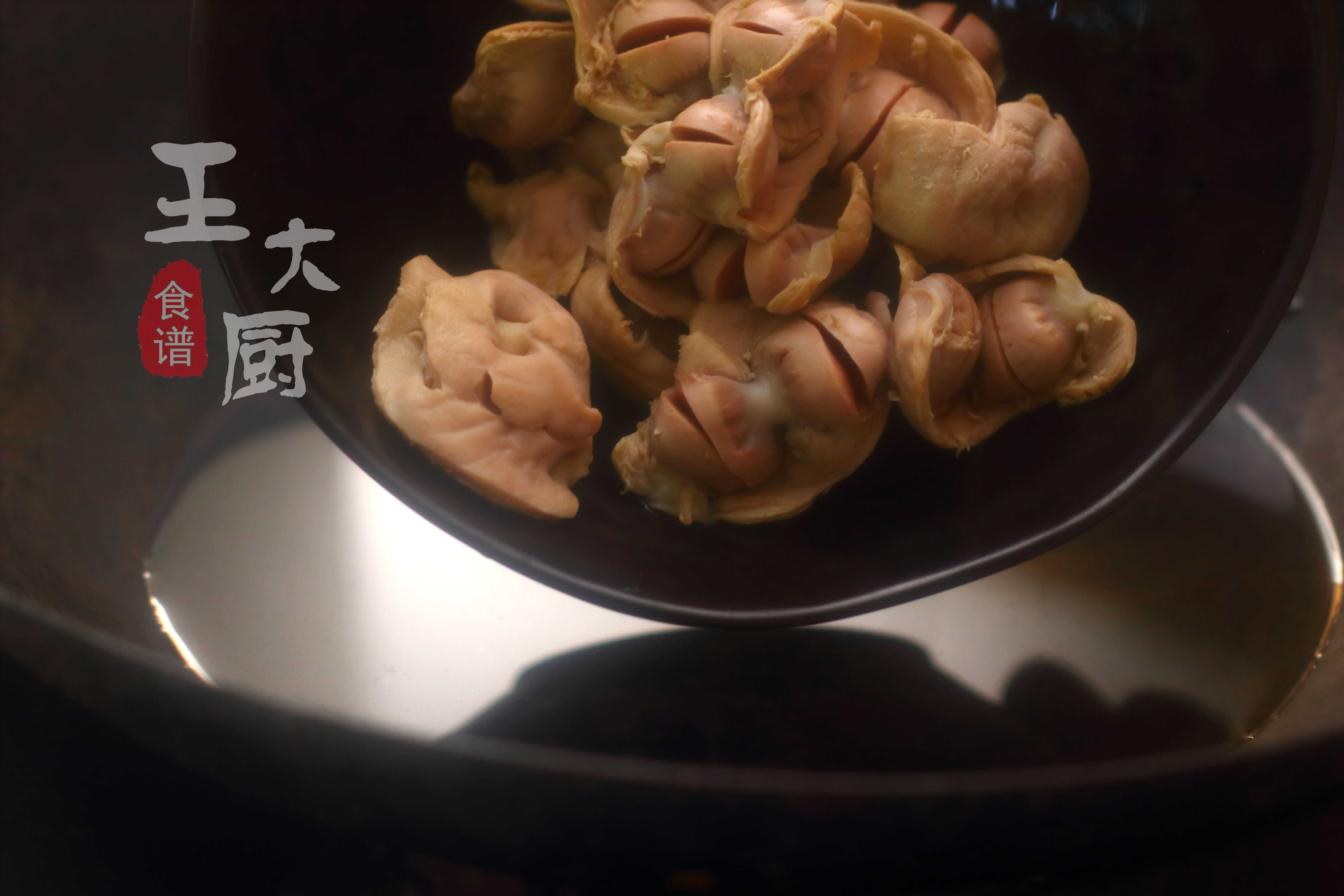 3、起锅烧水,将进行改刀后的鸡胗再次放在锅中。
