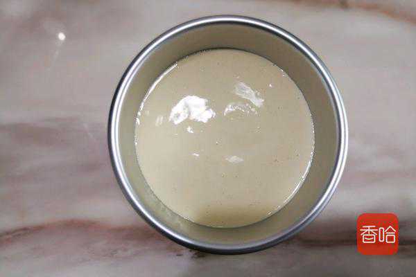 8.拌好的面糊倒入模具,震去大气泡(我的是6寸的活底模)
