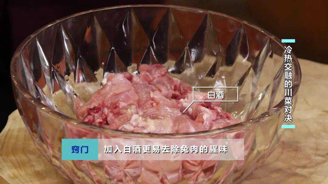 往兔肉中加入盐、鸡粉、白酒、姜片、小葱,抓匀后放置一旁腌制30分钟。