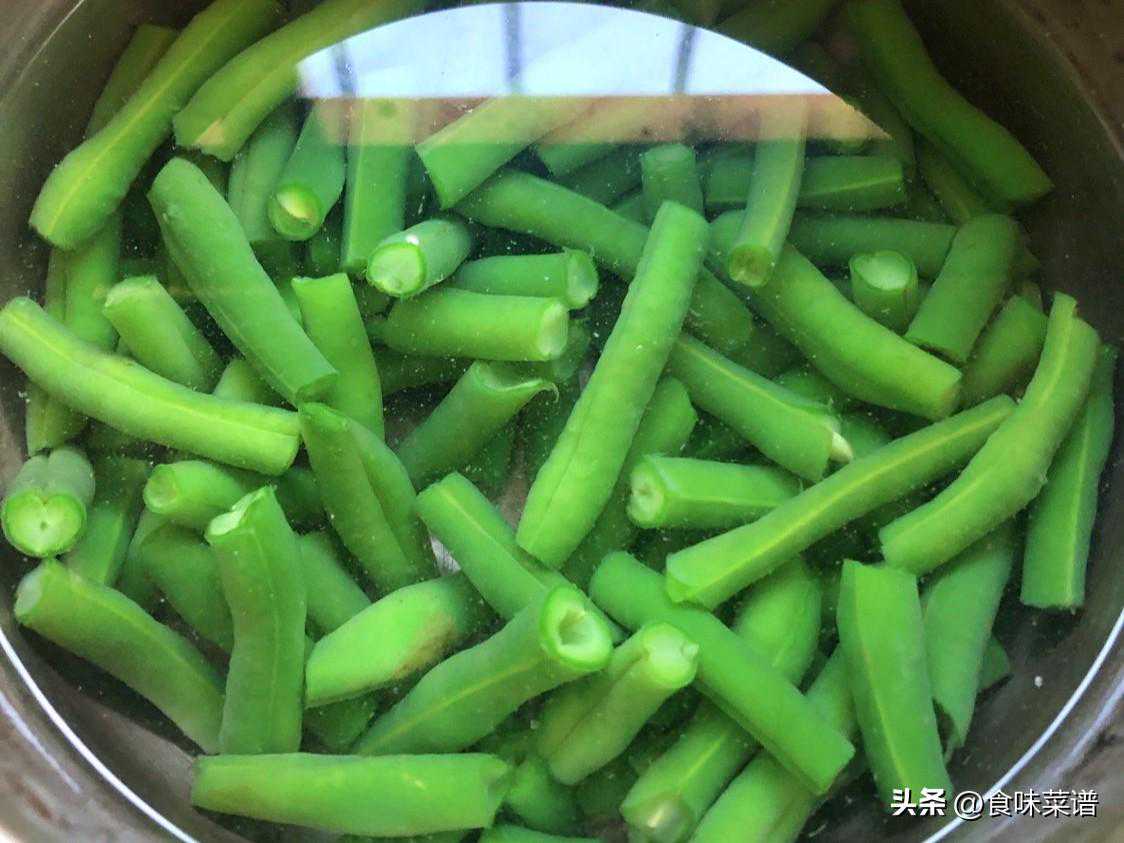 1、准备一把新鲜的豇豆角,挑一挑外观,有没有虫眼啥的,把豆角清洗干净,改刀切段,起锅烧水,水开放入豆角,加入少许的食盐和植物油,捞出控干水分。