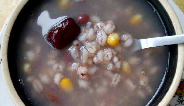 具体做法如下:大麦仁、薏仁、红豆,放在一起洗净泡一个小时,然后入锅,再挤入玉米粒和红枣,放入25克冰糖,加水熬煮,直到红豆皮开始脱落,放入洗净的大米一起熬煮到软烂香糯即可。