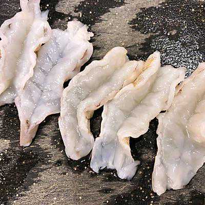 1、虾去头、壳,开背,去虾肠、虾线,