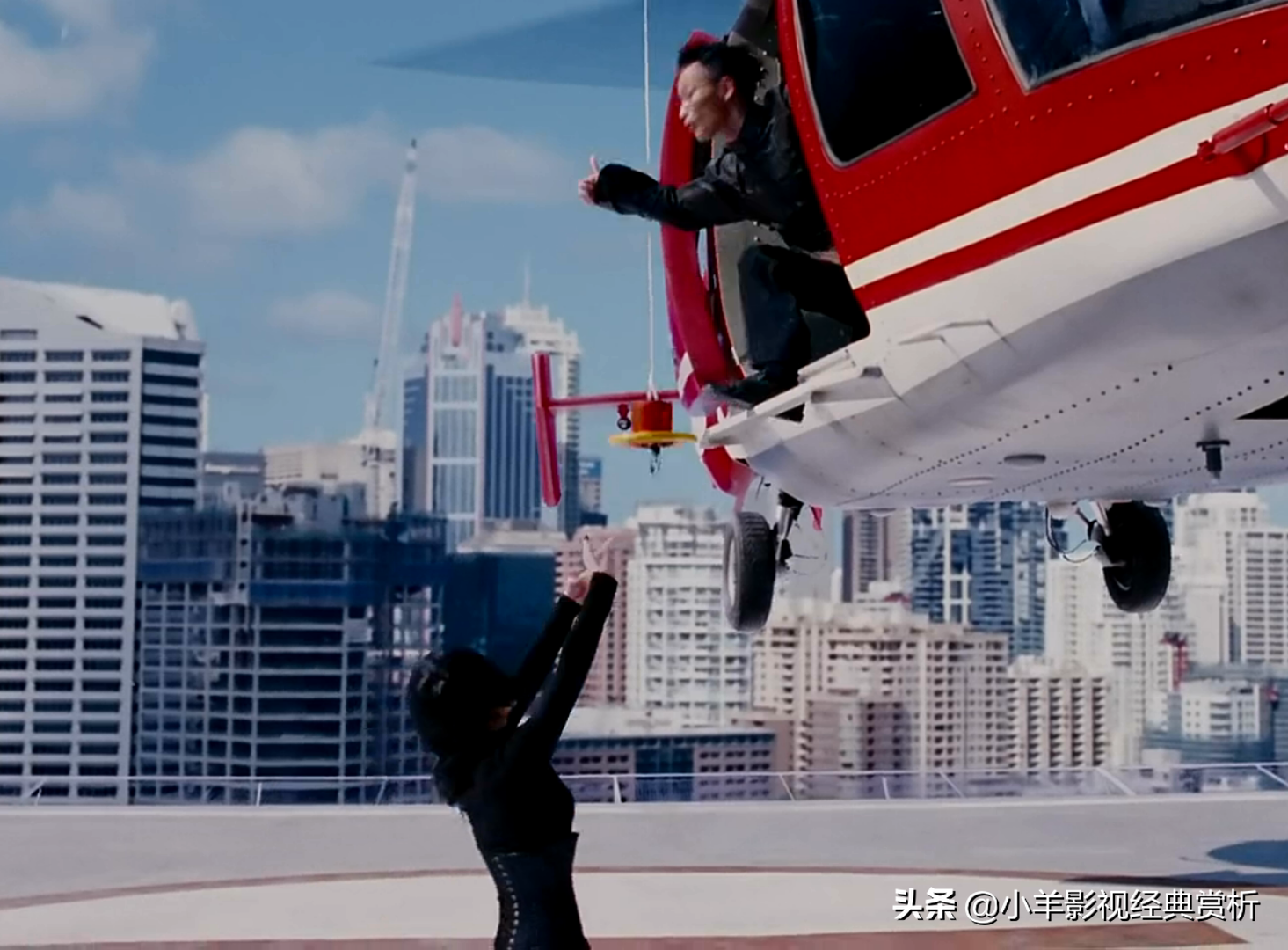 玫瑰夫人趁机登机逃跑,阿锦使出飞天绝技。