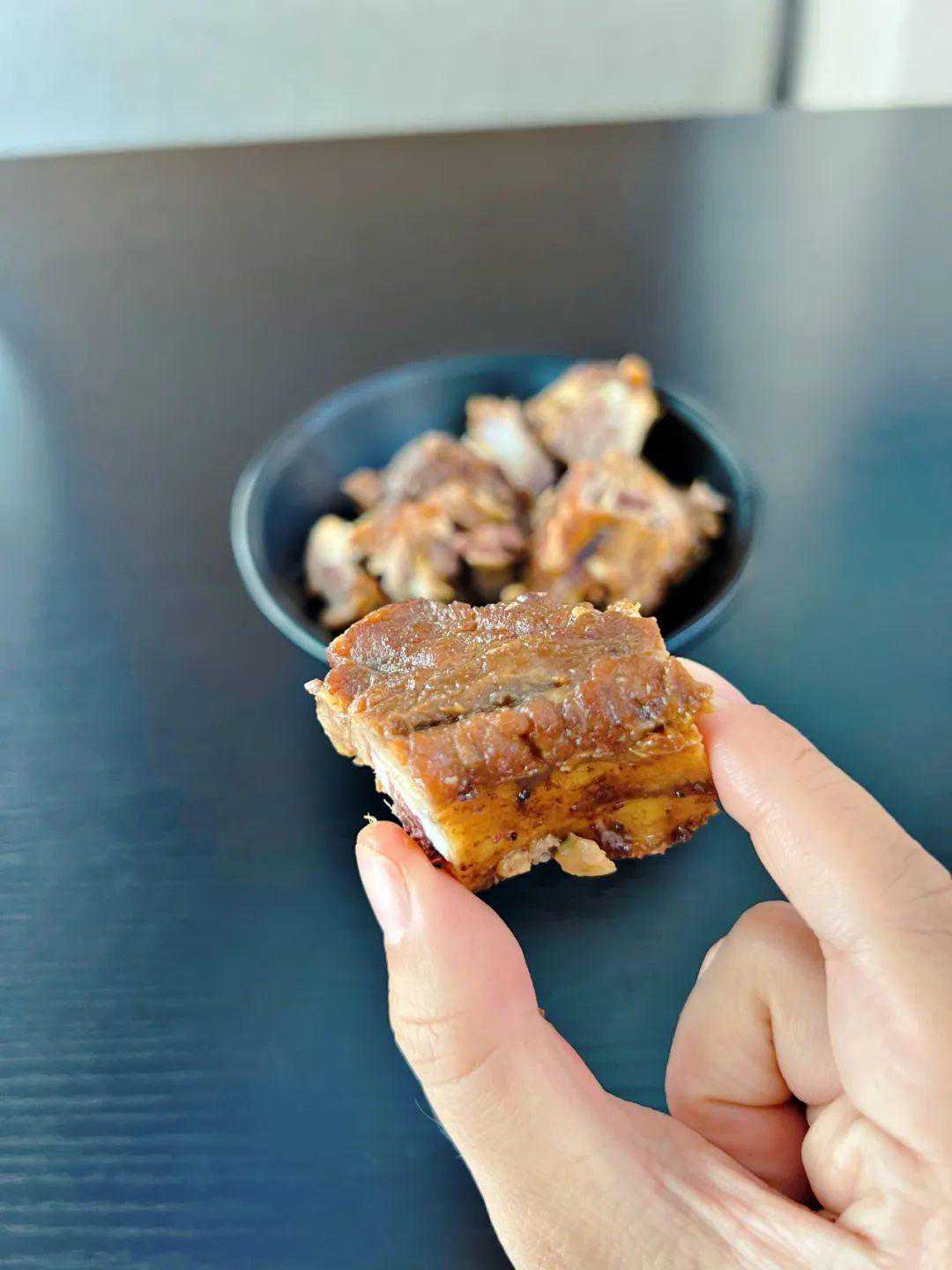 招牌的五未排骨62.8元/斤,买了一根大约40元。虽然是冷的卤排骨,但凉着吃也不腻,排骨选的肋排,肉厚入味,卤水柔和,带着老酱油的咸香味儿。