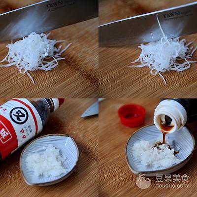 5、将白萝卜切成泥,放入适量的酱油.天妇罗的蘸料.