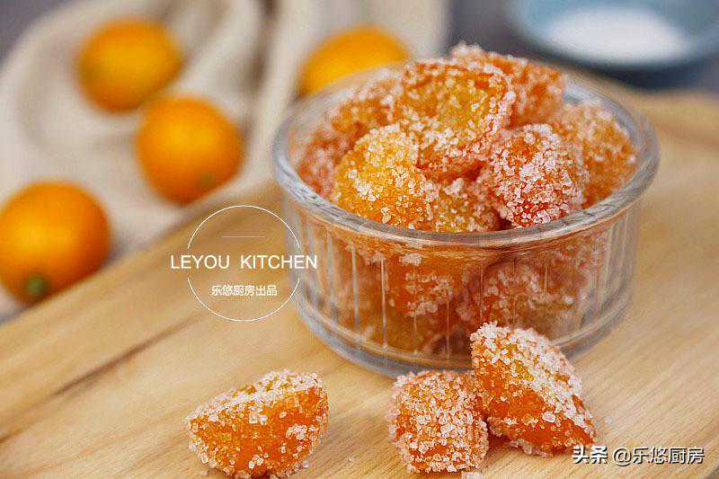 冰糖金桔,颜色金黄诱人,吃起来酸甜可口,越嚼越香。金桔有生津消食、开胃利咽等作用,常食还可增强身体的抗寒能力,预防感冒等。