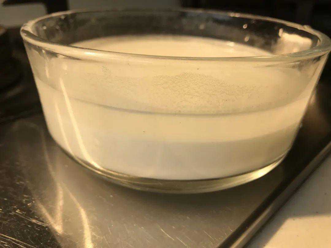 2.淀粉倒进碗里加水调成浆糊状,然后静置15分钟左右,淀粉分层后把上层的水倒掉。