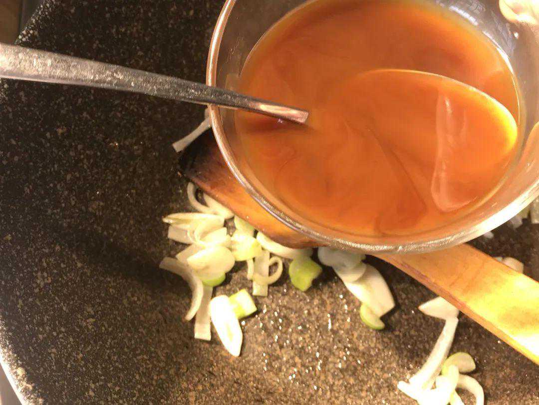 6.调制料汁,两勺生抽、一勺蚝油和白糖加入半碗水调和均匀,再加入少许食盐以及少许淀粉水搅匀备用。