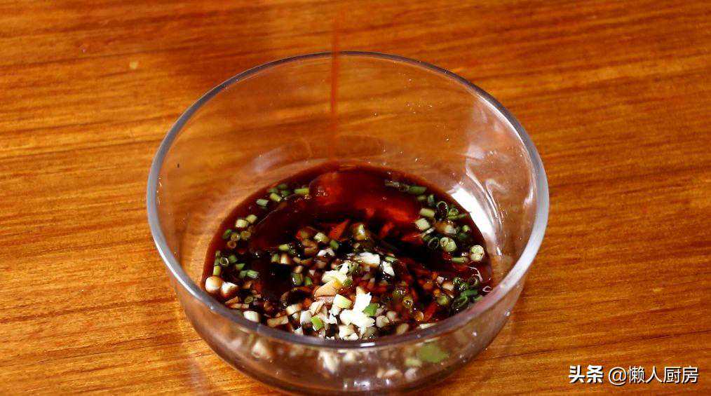 取一空碗,放入切好的大蒜末和小葱末,加入生抽、辣椒油、香油和白糖,搅拌均匀,调味。