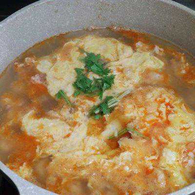 6、水开后把鸡蛋打散,淋到锅中。