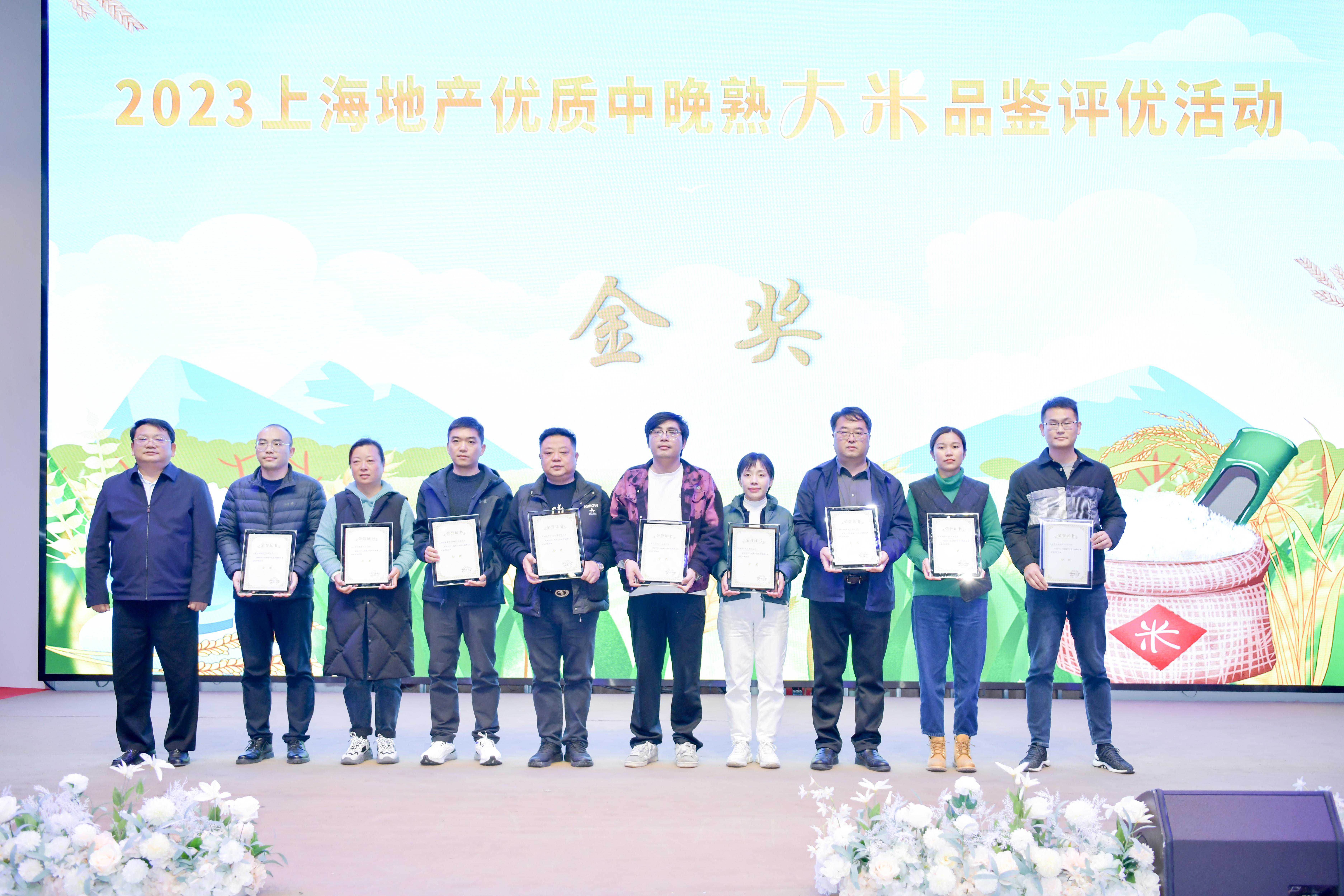在地产优质中晚熟大米品鉴评优活动中,上海佘农稻米专业合作社、上海松林米业有限公司、上海谷满香粮食种植专业合作社、上海家绿蔬菜专业合作社、上海汇民农业专业合作社、上海北湖现代农业发展有限公司、上海外冈粮食生产专业合作社、上海海丰米业有限公司、上海新弘生态农业有限公司、上海贤佑农业专业合作社10家企业(合作社)获上海地产优质中晚熟大米金奖,另有10家企业(合作社)获市民欢迎奖。