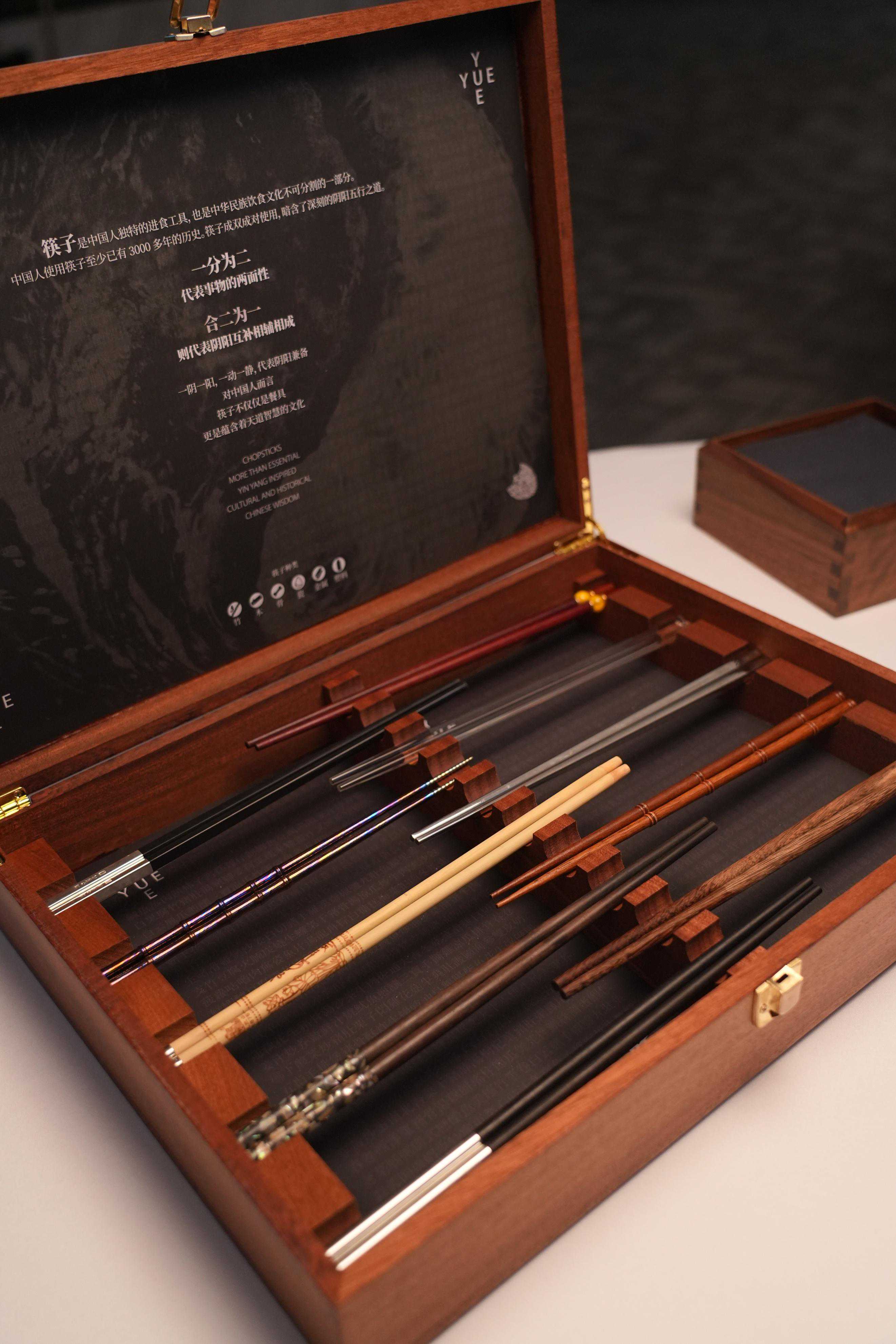 有选刀叉的,有选杯子的,在跃•Yue现代粤菜餐厅,第一次体验到筷子还可以选择,于是我选了一双爱马仕的筷子。