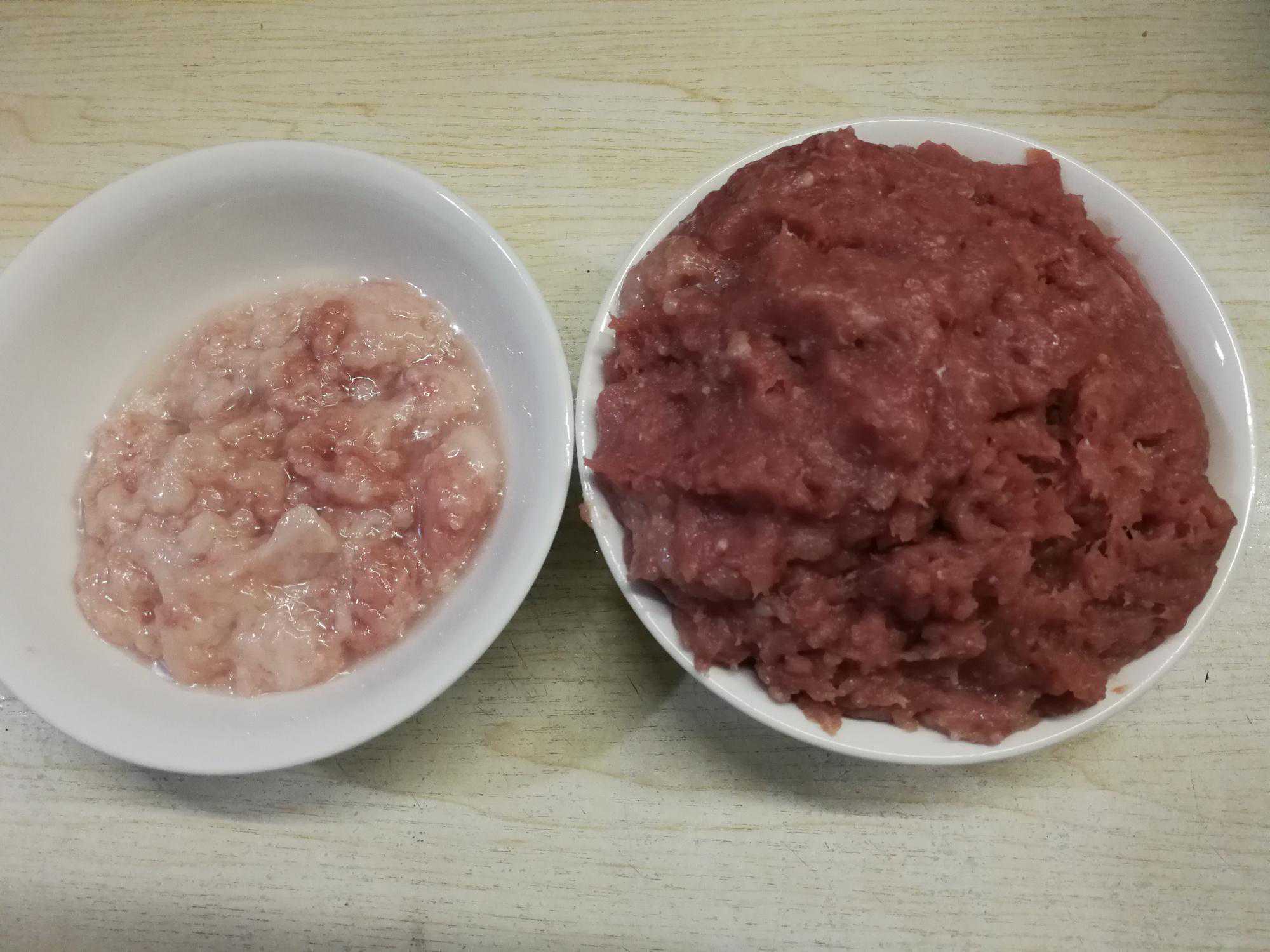 500克猪肉馅,其中有450克瘦肉、50克肥肉。
