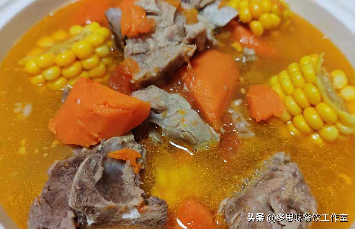 食材:脊骨(800克)、番茄(300克)、玉米(200克)、胡萝卜(200克)