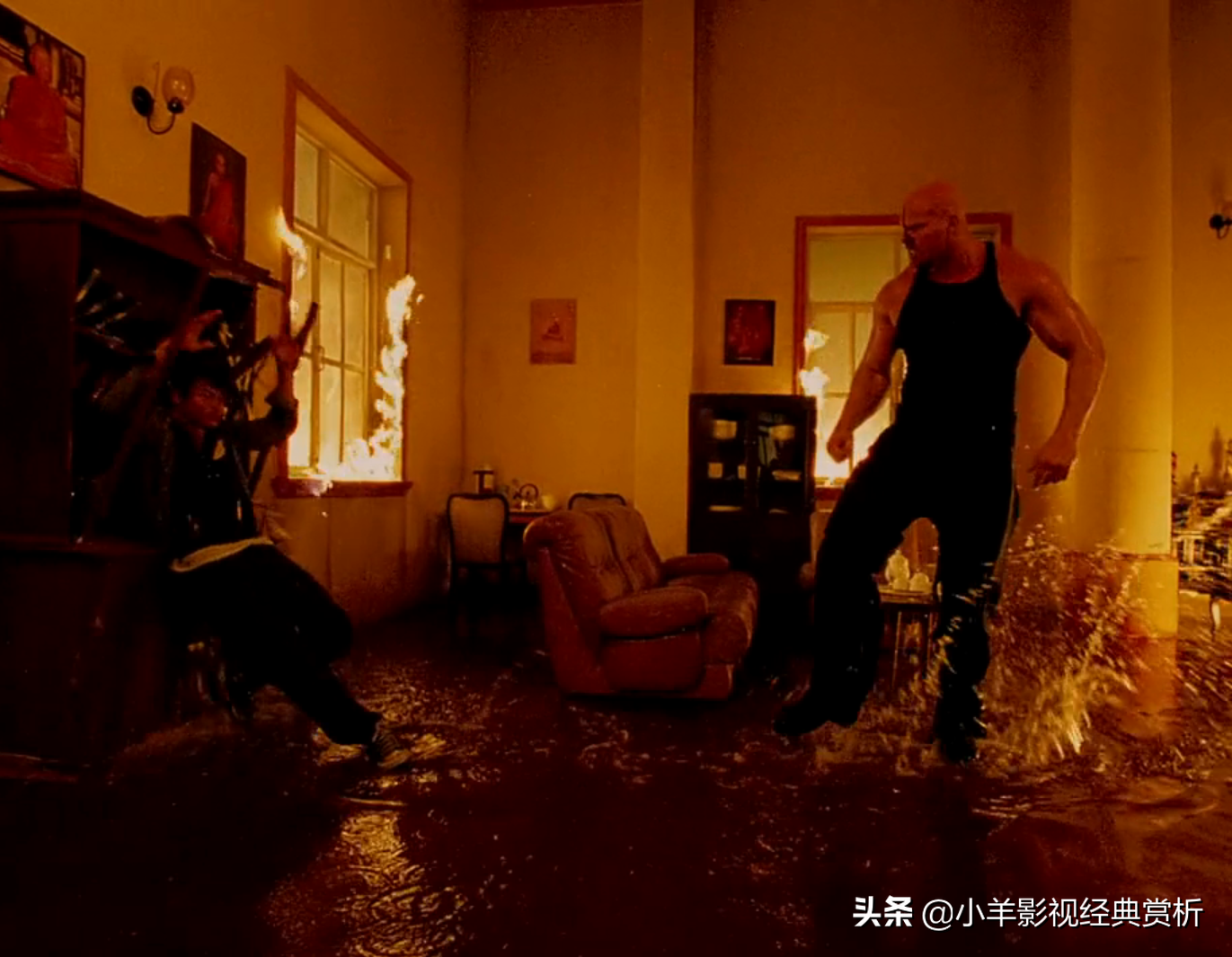 小编人认为这段室内动作借鉴与早期成龙电影《红番区》。
