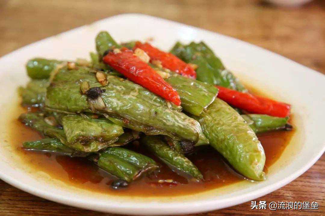 3、虎皮尖椒是真的好吃,但是因为东北人的骨子里都是肉,所以虎皮尖椒最后都变成了尖椒酿肉,尖椒里面裹的满满的都是肉,吃一口又香又嫩又烂烀,吃着尖椒也好吃!