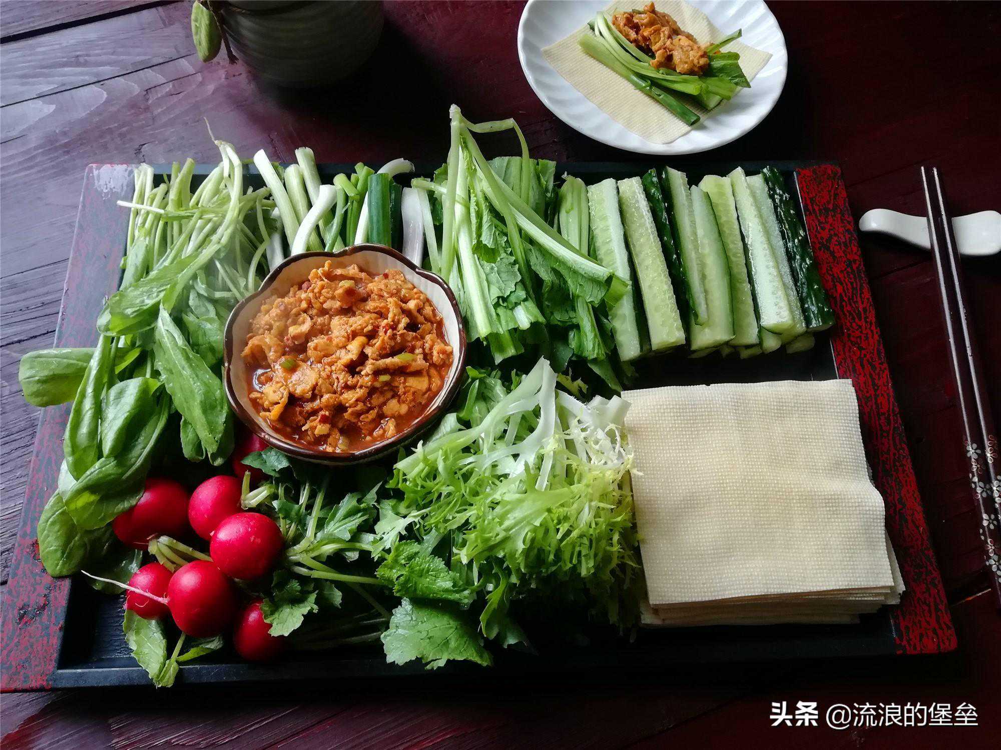 15、蘸酱菜在东北就是能生吃的菜都可以蘸酱,什么黄瓜、香菜、小葱、干豆腐、生菜、白菜、臭菜、婆婆丁都可以蘸,可以说是万物皆可蘸,你想象不到的好吃,炸点鸡蛋酱味道老盖了!