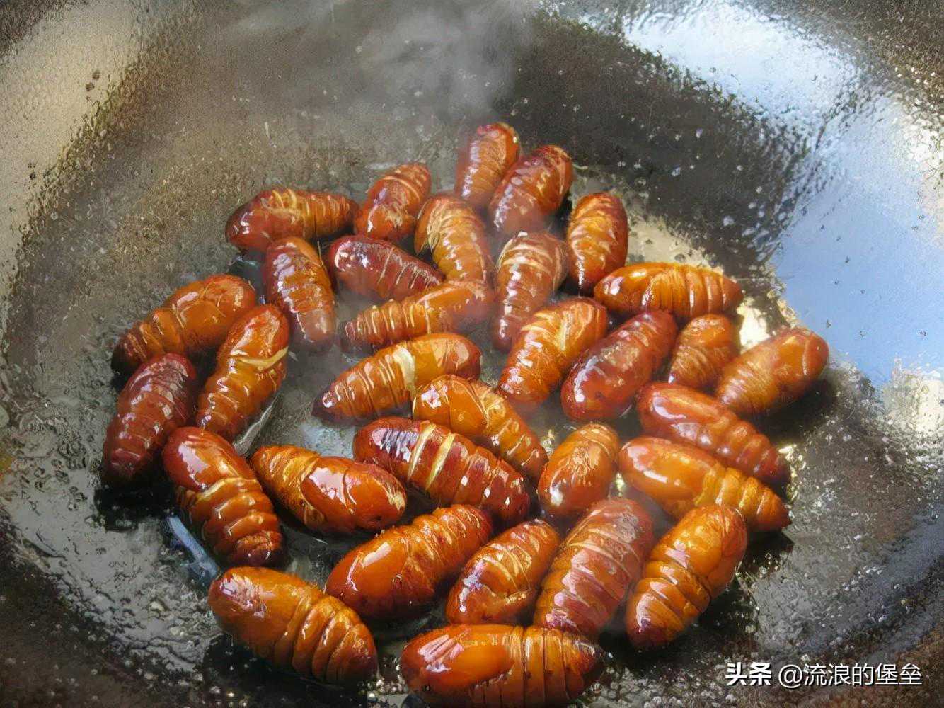 25、炒蚕蛹,比不上外地的虫子宴,一道菜可以补充营养还能让人解馋,酥脆的外皮,里面的肉像是蛋黄一样,特别的香,东北人都控制不住的想吃,蒸煮煎炸没有不可以来的!