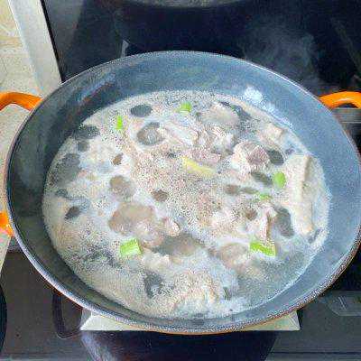 4、排骨煮沸后,继续煮2—3分钟煮出排骨的血沫和脏污后,捞出热水冲洗干净排骨沥干水。