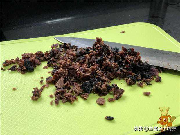 1、把准备好的蔓越莓,葡萄干切碎,要尽量切碎一点,这样撒进面糊时,分布才会更加均匀。