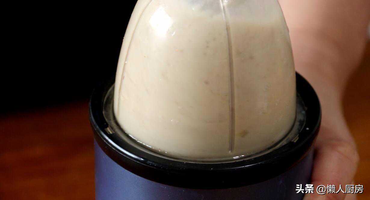 取出压好的板栗,加一点牛奶倒入搅拌机里,打成板栗糊。