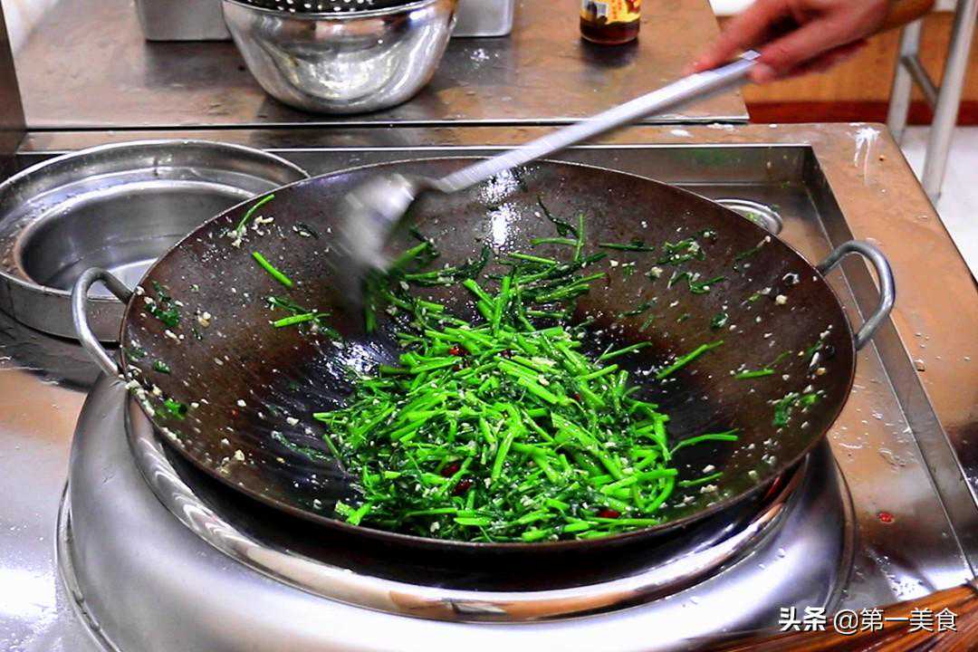 空心菜一炒就黑?焯水加醋都不对,试试饭店这1招,成菜又脆又绿
