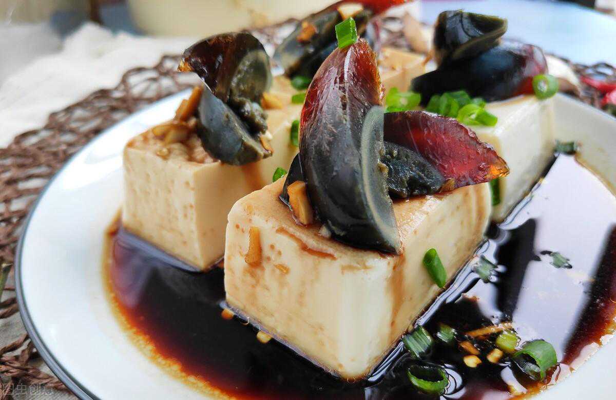 做法:把买回来的皮蛋剥去皮然后用清水冲一下放着备用,然后把盒装豆腐打开倒碟里,接着把皮蛋用筷子夹成两半也放进碟里,接着倒入适量的生抽,盐。鸡精。味精。少量料酒、醋、少量白糖,最后搅拌一下即可。喜欢吃小虾米的朋友可以在搅拌好后放上适量的小虾米,味道超级好吃。