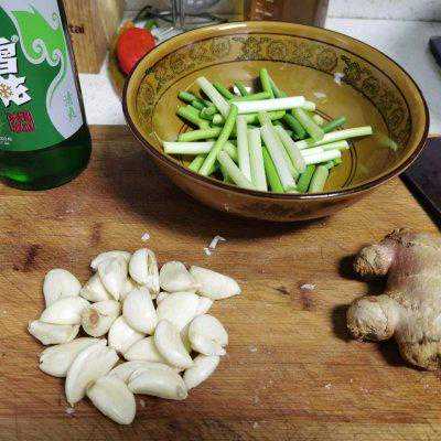 2、准备蒜苗、大蒜、生姜、啤酒