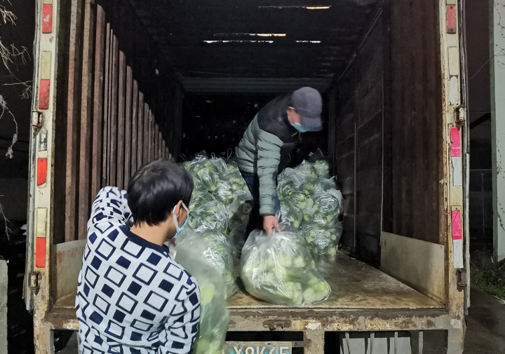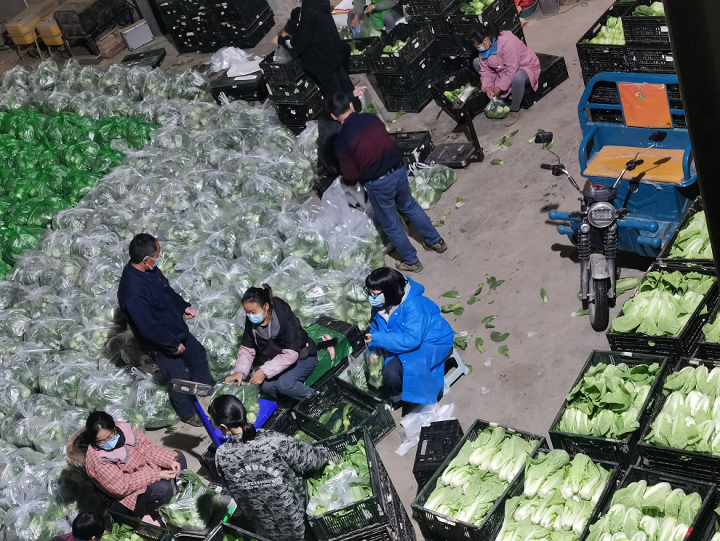 早上6点钟开始,大家从田间收割、中间运输、分拣包装到装车运卸,在做好自身防疫的同时,加快运转流程,缩短蔬菜周转时间,一直忙到第二天凌晨5点,终于将基地上采收的青菜第一时间运抵上虞地区。